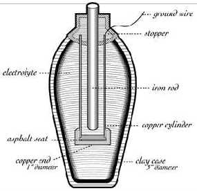 The jars are believed to be about 2,000 years old and consist of an earthenware shell, with a stopper composed of asphalt. Sticking through the top of the stopper is an iron rod. Inside the jar the rod is surrounded by a cylinder of copper. Konig thought these things looked like electric batteries and published a paper on the subject in 1940.