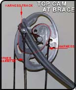 Take a look at your harness track. Follow the groove all the way around, from the point where the harness attaches to its end near the axle. This termination usually a flat portion of the track - represents the back wall of the draw cycle. Now follow the harness around the groove as you draw the bow. You'll see the harness drop in next to the axle right at the end of the draw. The harnesses of both wheels should drop into their grooves at exactly the same time .